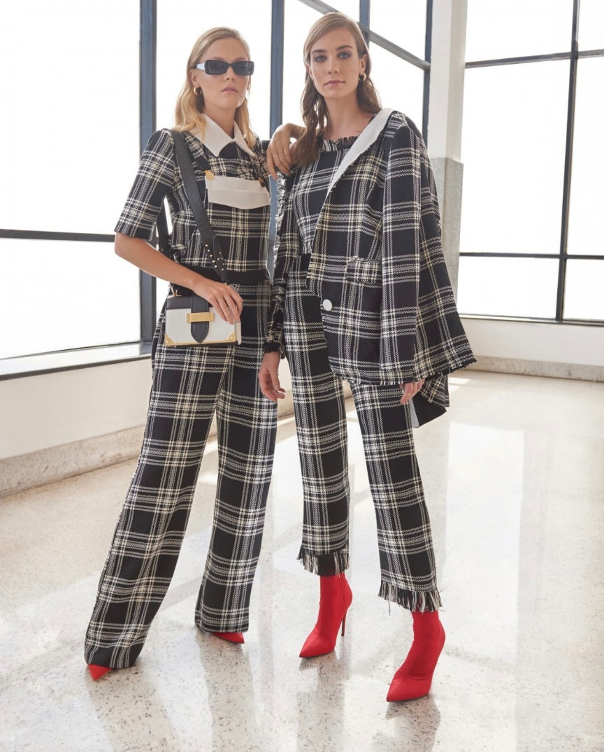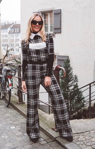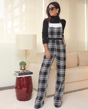BLACK & WHITE PLAID OVERALL JUMPSUIT