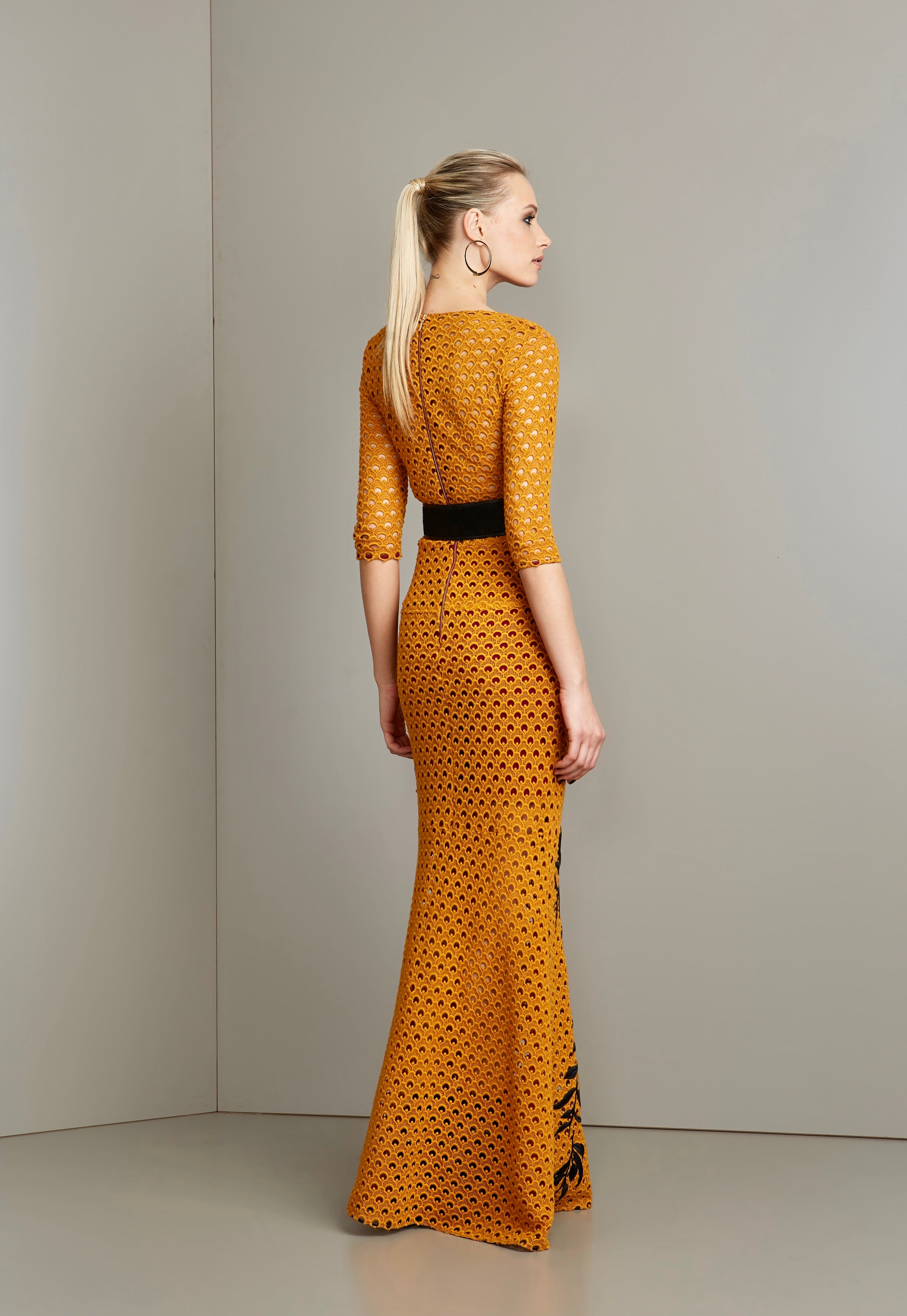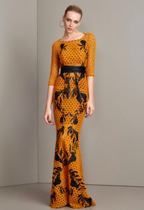 MUSTARD LACE W/ BLACK EMBROIDERY GOWN