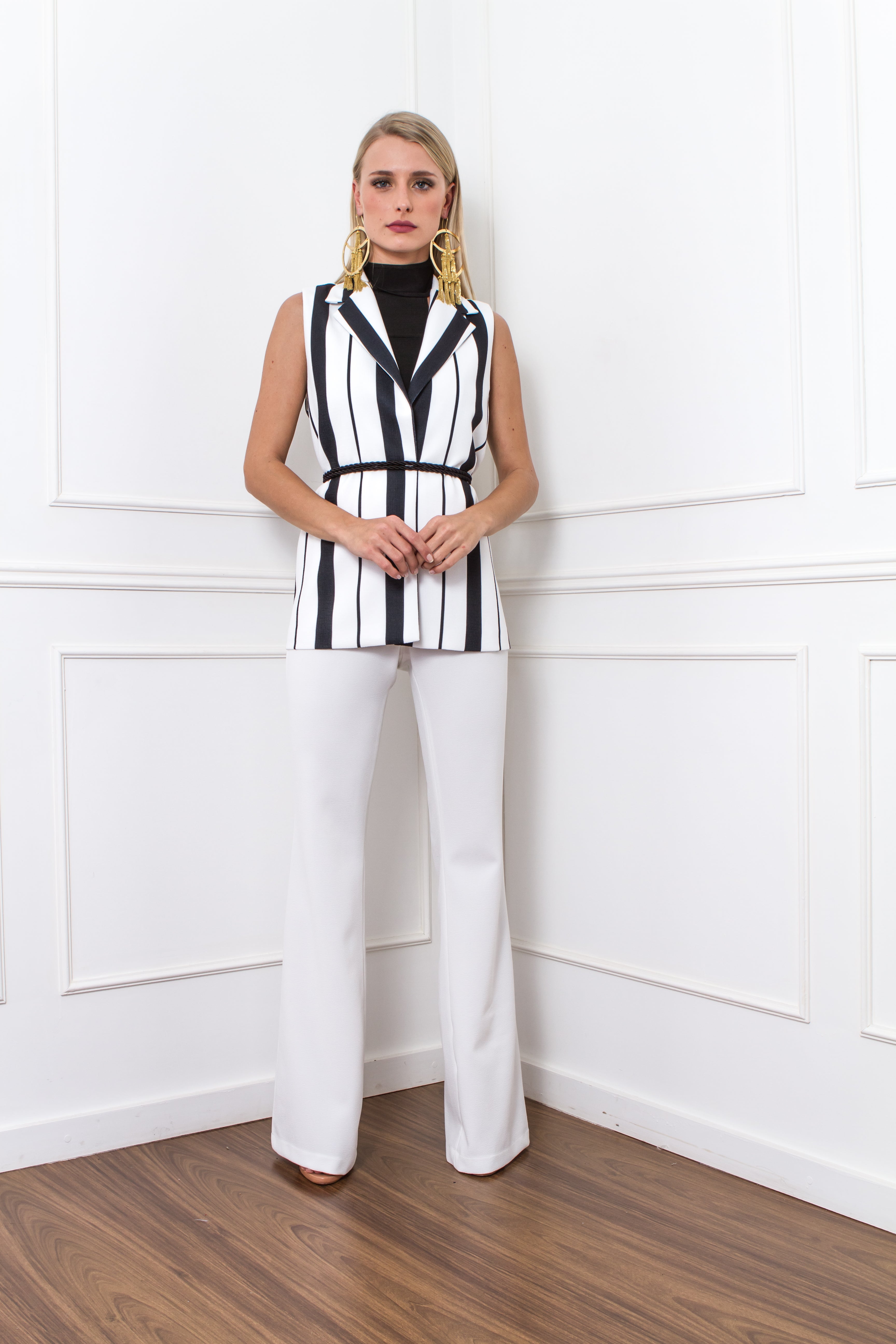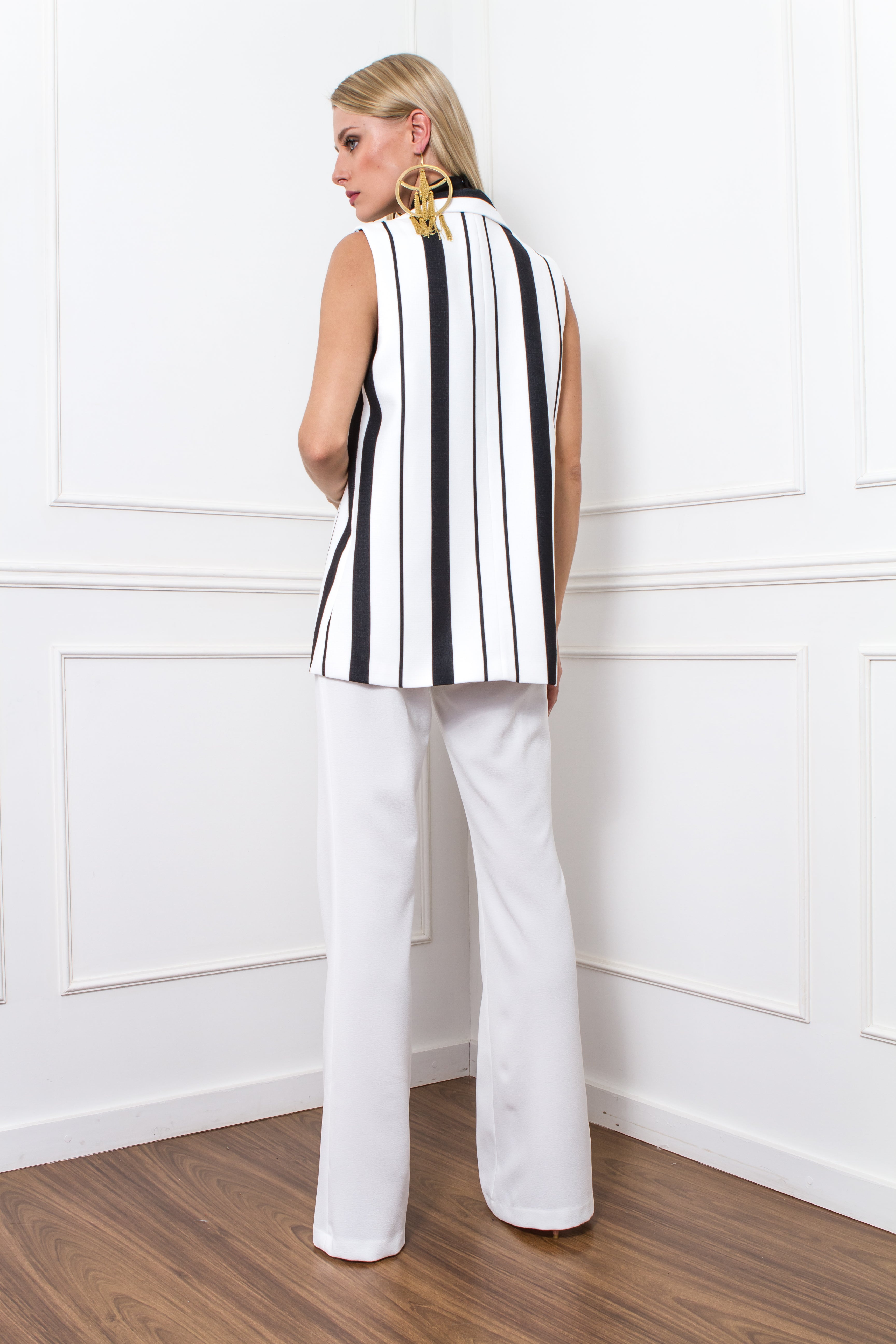 BLACK AND WHITE STRIPE LONG VEST