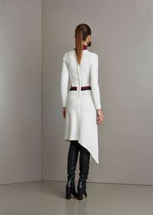 WHITE BANDAGE LS. DRESS W. BURGUNDY DETAIL