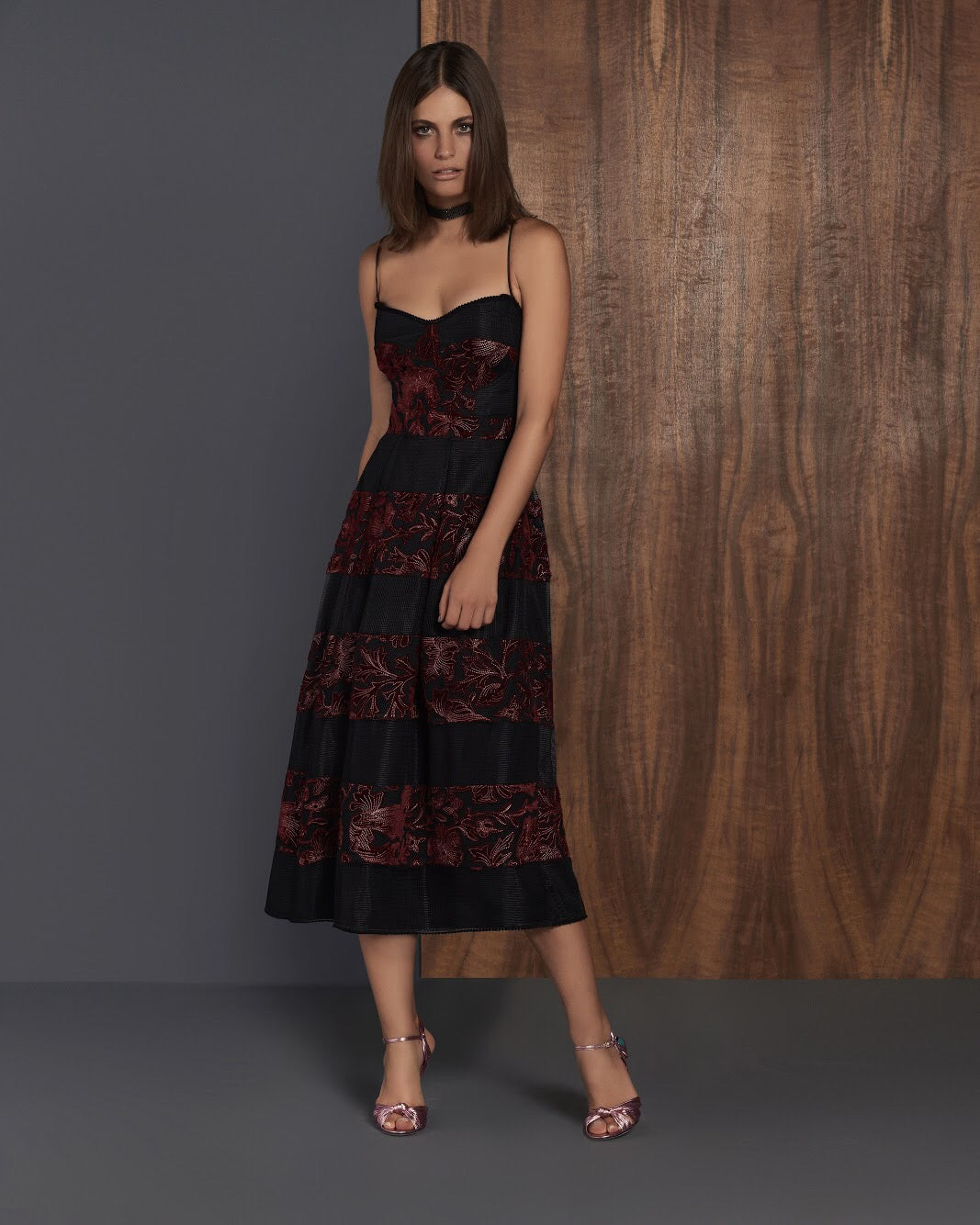 Black & Burgundy velvet and net dress