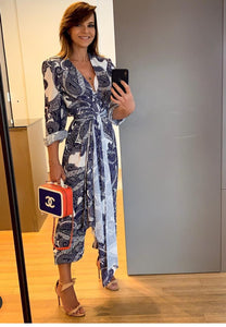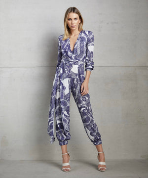 Blue & White Print Jumpsuit