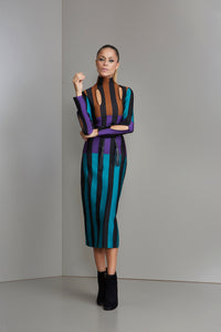 Green purple and brown striped turtle neck dress
