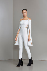 WHITE OVERSIZE SLEEVE W/ BEIGE BOTTOM JUMPSUIT