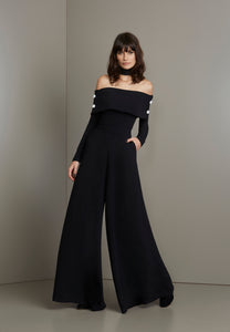 Black off shoulder flare jumpsuit